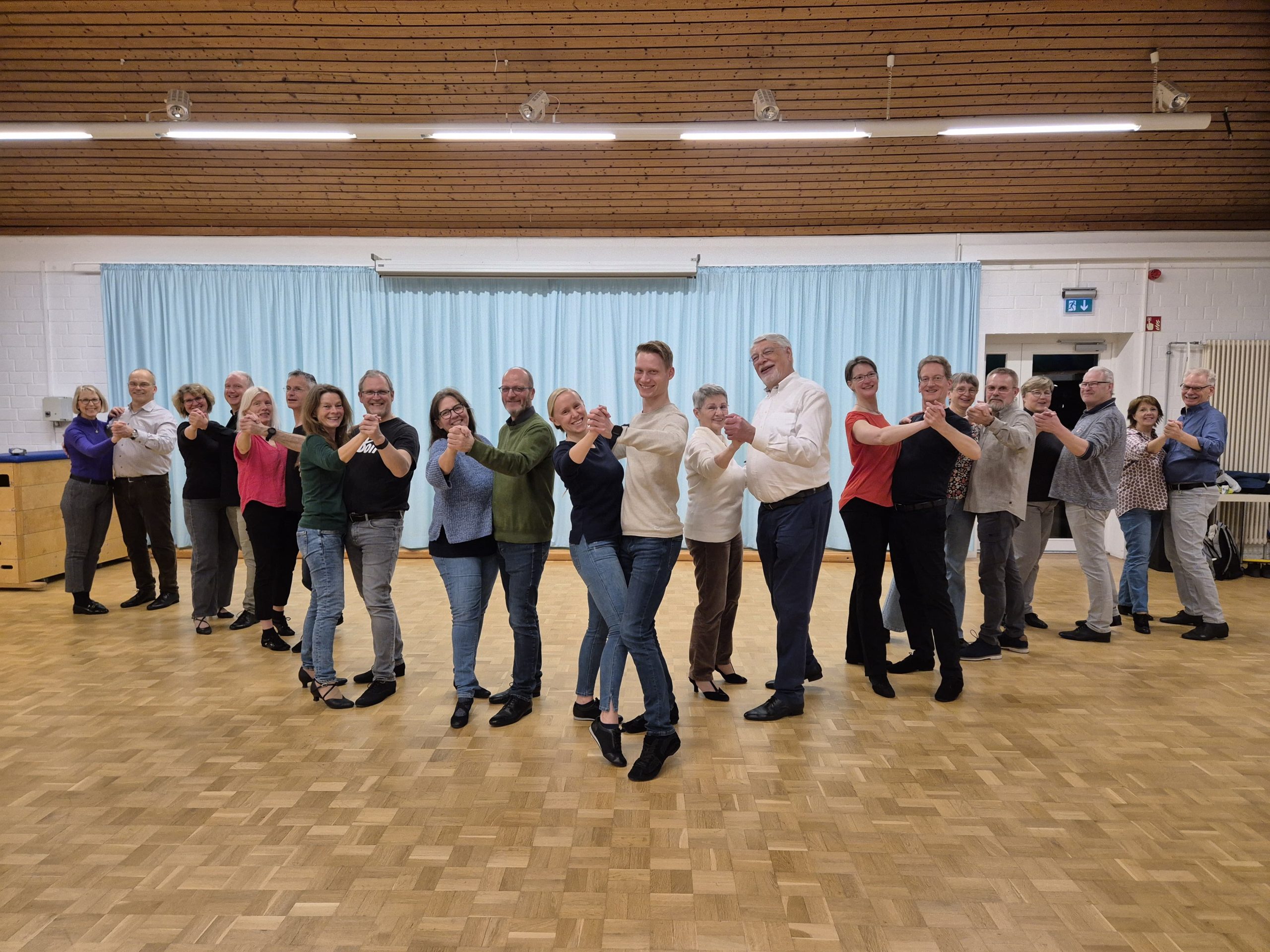Wir, das sind momentan elf Paare, die mit Freude tanzen, lachen und immer wieder Neues lernen – auch wenn nicht immer alles sofort klappt. Im Laufe der Jahre haben uns einige Paare verlassen, aber neue sind auch hinzugekommen.